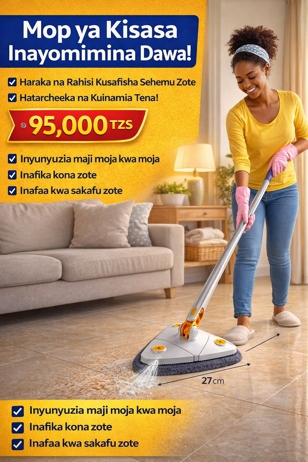 Mop ya Kisasa ya Pembetatu – Inazunguka 360°, Urefu 130 cm, Kusafisha Sakafu, Kuta na Dari